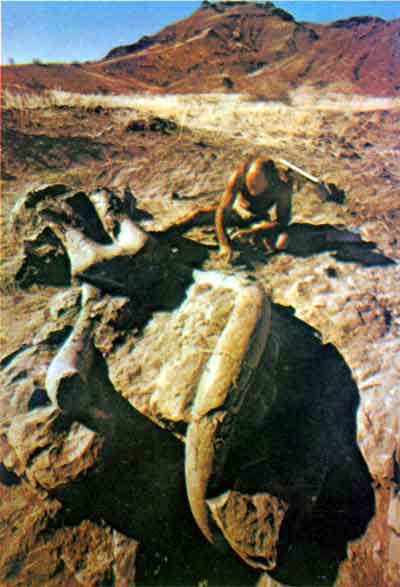 Клод Гийемо расчищает почти полный скелет ископаемого слона. Ныне эта находка хранится в Аддис-Абебе. |