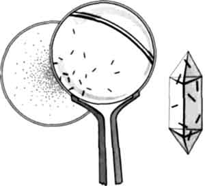 Затем кристаллы циркона нужно выложить в небольшую плоскую тефлоновую посудину, причем таким образом, чтобы они образовали на ее дне плотный слой толщиной в один кристалл. Сделать это не так трудно, как кажется: длина кристаллов в несколько раз больше их ширины, поэтому для них естественно лежать на боковой грани. Зафиксировав кристаллы с помощью специального клеящего вещества, их полируют, чтобы удалить с наружных поверхностей все возможные царапины и следы разрушения. Эта процедура совершенно необходима — в дальнейшем Уолтер будет искать под микроскопом небольшие, похожие на царапины следы, образовавшиеся при распаде урана внутри кристалла. Для определения возраста Уолтеру нужно будет считать эти следы, поэтому на поверхности не должно быть ничего такого, что можно с ними спутать, — даже малейших неровностей.