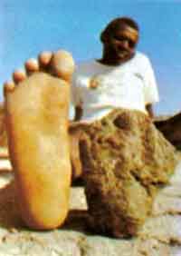 Однако Ндибо, к своей чести, успешно справился с задачей. Он вернулся в лагерь на следующий день и сообщил, что обнаружил целых два следа. Один из них был очень большим: Ндибо широко — сантиметров на 30 — раздвинул руки.