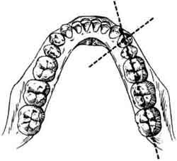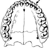 Зубная дуга и диастема (указана стрелкой). | ||