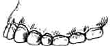 Клыки и расположенные позади них зубы образуют почти прямые параллельные ряды. | Зубная дуга всегда имеет плавно изогнутую параболическую форму. |