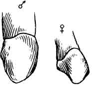Убедившись в том, что по критериям Ле Гро Кларка наши находки занимают промежуточное положение между человеком и антропоморфными обезьянами, но больше сближаются с последними, мы решили подкрепить этот вывод дополнительными данными и произвели сравнение еще по нескольким признакам. На рисунках (с. 200-201) представлены три примера.