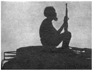 Селати, проводник-афар, во время экспедиции 1980 года дежурит на крыше лендровера, охраняя лагерь. |