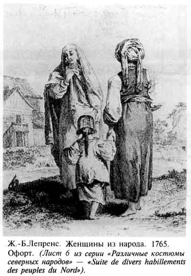 На наш взгляд, причина столь "неразумного" расхода средств в том молчаливом уважении мужской половины крестьянства к своим женщинам за их тяжелый, непомерный труд в хозяйстве. Эту суровую долю русской женщины отметил в конце XVIII в. И. Георги: "Они весьма пекутся о чистоте в доме, прядут на самопрялках и на пряслице, ткут холстину и сермяжные сукна на станках... белят, валяют, красят, вяжут кружева... для утиральников и повязок, делают войлоки, стряпают кушанье, пекут хлебы, смотрят за домашнею живностию и вообще больше всех других европейских поселянок упражнены, можно сказать, до излишества, ибо сверх работ своих во весь почти год отправляют на дому и в поле те же работы, что и мущины, выключая немногих". И. Георги не стал раскрывать тяжелую полевую работу великорусских женщин, но можно ее несколько детализировать. Так, в описании Кашинского уезда Тверской губернии мы находим перечень именно женских работ: "Женщины чрез зиму прядут, кормят мелкую скотину и мужчинам в присмотре за крупною помогают. С марта по июнь ткут холсты и сукна, вышивают гарусом ширинки и платки, в огородах копают, садят овощи и помогают мужчинам в чищении лугов. В июне возят навоз и оный разбивают. В июле ходят на сенокос, лен полют, потом выбирают и рожь жать начинают. В августе продолжают жнитво, выбирают и стелят лен, овец стригут. В сентябре дожинают хлеб, огородные овощи убирают, мнут и треплют лен. В октябре и ноябре пособляют молотить". А вдовы еще и пашут, и боронят, и сеют. Да и в некоторых районах в обработке земли участвуют и все женщины (в Ржевском уезде, например, "женщины в озимую пашню боронят"). А в Вышневолоцком уезде в "несемьянистых хозяйствах женщины и косят, а иногда пашут". И так на Руси было многие столетия. Здесь уместно еще раз вспомнить Поучение к попам 1166 г. новгородского архиепископа Ильи, где, в частности, есть такие строки: "и жены, делающие страду, врежающеся, изметают: аще не зелие — без вины суть", то есть, если крестьянка на тяжелых полевых работах, повредив себе чем-то, сделает выкидыш и если она не принимала зелье, то вины ее в убийстве младенца нет. Разумеется, если православная церковь принимает такое постановление, то такие несчастья были, видимо, весьма распространенным явлением, что убедительно подтверждает условия тяжкого, надрывного труда русской женщины. Именно поэтому сельский уклад жизни создал как некую компенсацию обычай, допускающий щегольство, хотя и весьма скромное, русской женщины-труженицы. Именно поэтому крестьянская семья шла на некоторые траты, "но не столько от необходимости, сколько для щегольства и украшения ".