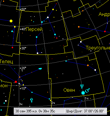 Возможная ошибка не превышает здесь трех градусов долготы1), и она для нас совершенно безразлична, так как Марс все-таки остается под Персеем, прикрывающим сверху всего Овна.