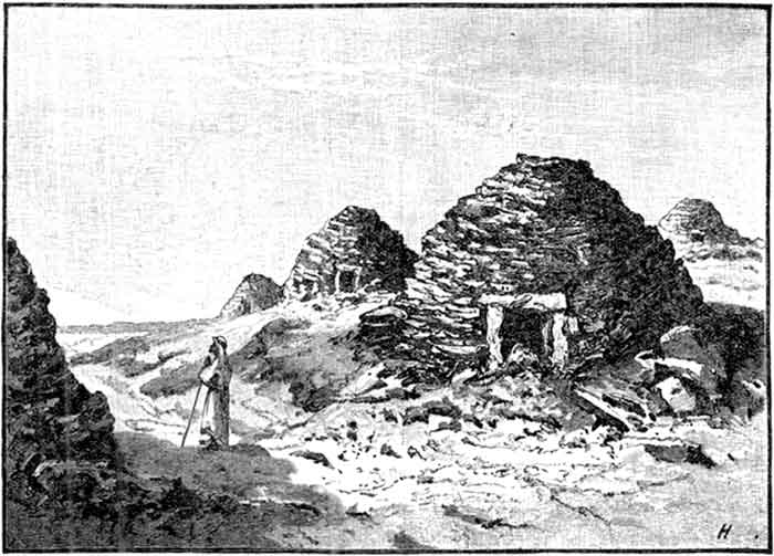 ![]() Рис. 45. Древние жилища в пустыне Эль-Тиг (по Пальмеру The Desert of the Exodus). |
