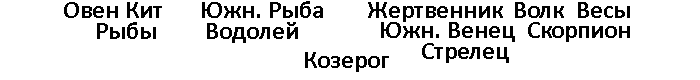 «Поднимайте знамя на Путеводном столбе!—восклицает он от имени Громовержца.—Бегите, не останавливаясь! Я веду к вам с севера великое бедствие и гибель. Вот вышел, поднимаясь в высоту, Лев (созвездие Льва, рис.67) из чащи (своих координат), вот восходит Истребитель народов (Скорпион, рис.68), чтобы обратить вашу страну в пустыню, разрушить города и оставить их безлюдными. Опоясывайтесь же веревками в знак горести, плачьте и рыдайте, потому что пылающая Головня Громовержца (та же комета Галлея) еще не отошла от вас!
