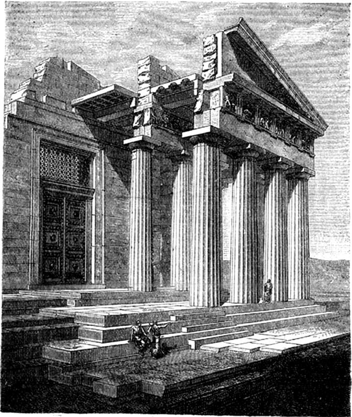 ![]() Рис. 91. Северо-западный угол храма «Небесной Девы» (Партенона) |