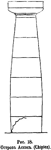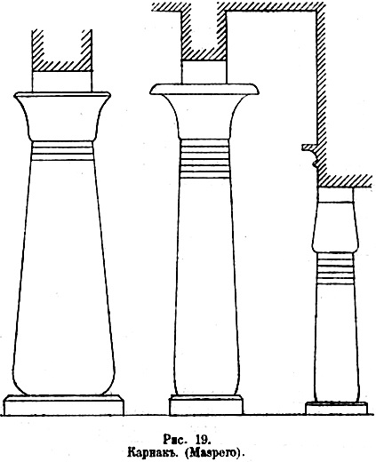 И он приводит по Шипису (Chipies) колонну храма на острове Ассосе (рис. 18 со стр. 35), а потом дает рисунки и колонн Карнакского храма в Египте по Масперо (Maspero) (рис. 19 на стр. 36).