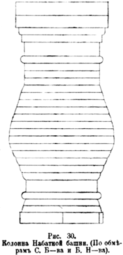 Мы видим, что здесь обнаружена в точности та самая форма, которую проф. Николаев получил на своих моделях из канифоли. Является лишь вопрос: были ли эти колонны первоначально сделаны цилиндрическими и изменились потом в эти веретенообразные формы, или их сделали не так уж давно, придавши им такой вздутый по средине вид в подражание другим, более древним колоннам, уже деформированным ко времени постройки Ассосского и Карнакско-го храмов?