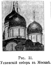 А вот и причина луковицеобразных деформаций. Существуют записи, что на Черниговском соборе, — говорит проф. Николаев, — в «Московское Правление» была сделана деревянная крыша вместо прежней свинцовой, и что Елецкая церковь при Батые была, наоборот, прикрыта ОЛОВЯННЫМИ (вероятно, тоже свинцовыми) таблицами. Но несомненно, что кровли, сделанные из такого текучего материала, как свинец (или даже олово) не могли сохранить долго своей первоначальной формы и скоро превратились сами в луковицеобразные. Упомянутый тут способ покрышки свинцом и оловом не был тут, конечно, изобретен. Очень возможно, что он пришел к нам также из Византии, где тоже из первоначального свинцового конуса самообразовалась быстро луковица, которой и стали подражать.