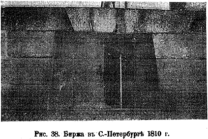 Рассмотрим теперь хроническое изгибание горизонтально лежащих каменных прикрышек уже приведенных мною не раз зданий бывшей биржи, а теперь Музея Академии Наук, как это сфотографировал проф. Николаев в 1905 году (рис. 37 и 38, стр. 56).