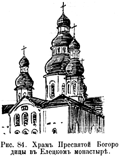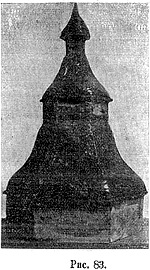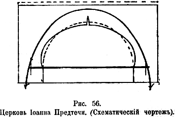 Мы видим здесь тот же путь искривления, который приводит и первичный конус к луковицеобразной форме. И совершенно такие же типы мы имеем во множестве русских церквей. Вот например хотя бы храм Богородицы в Елецком монастыре, каким он был в 1905 году (рис. 84, стр. 118). Ведь это совершенно тот же тип, как и деформировавшаяся модель проф. Николаева. Само собой, понятно, что Елецкий храм и был первоначально построен приблизительно таким же, каким он существовал в 1905 году. Но, почему? Ответ совершенно ясен. Архитектор уже видел деформировавшиеся конические крыши, но, ничего не подозревая о деформациях, думал, что они и были построены такими. А благодаря тому, что эта форма оказалась красивее первоначальных усеченных конусов, он и воспроизвел ее, хотя и с несравненно большим трудом на своем сооружении.