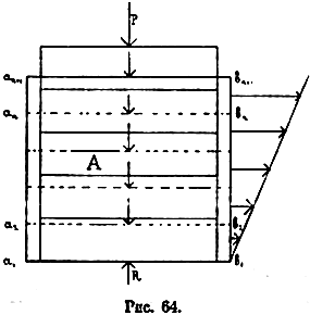 Перейдем теперь и к деформации подставок, на которых стоят колонны и к деформации лежащих на них карнизов от давления на них колонн по закону: «действие равно противодействию», характеризующему все тела, находящиеся в статическом состоянии по отношению друг к другу.