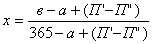Где х есть понижение общего годичного производства в государстве от перехода к более сокращенной неделе; а — годичное число очередных свободных дней (в данном случае «воскресений») при прежней неделе; в — годичное число их при новой неделе; П’ — число одиночных праздников при употреблении прежней недели, и П” — число их после перехода к новой неделе.