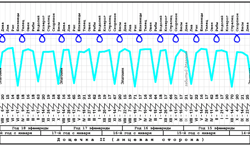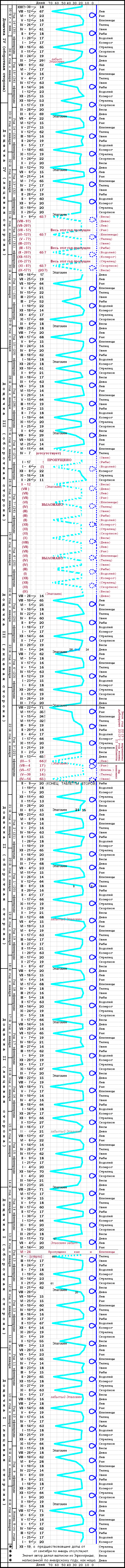 | Год 8-1-25, Водолей | - 1 день | Год 15-1-24, Водолей | -5 дн. | Год 22-1-19 Водолей | - 3 дн. | Год 29-1-16 Водолей |