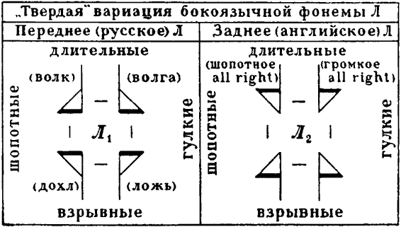 Рис. 26. Две основные вариации бокоязычных фонематических квадратов: переднее и заднее Л. |