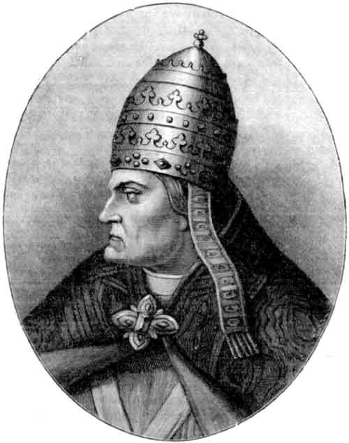— Цезарь, мой государь, и все епископы по ту сторону гор повелевают тебе немедленно сойти с престола, которым ты противозаконно овладел, потому что без согласия их и императора никто не должен занимать этот престол. Вас же, братья (и говоривший обратился к присутствующему духовенству), я приглашаю явиться в Троицын день к цезарю. Он назначит вам папу, потому что тот, который сидит здесь, не папа, а хищный волк.