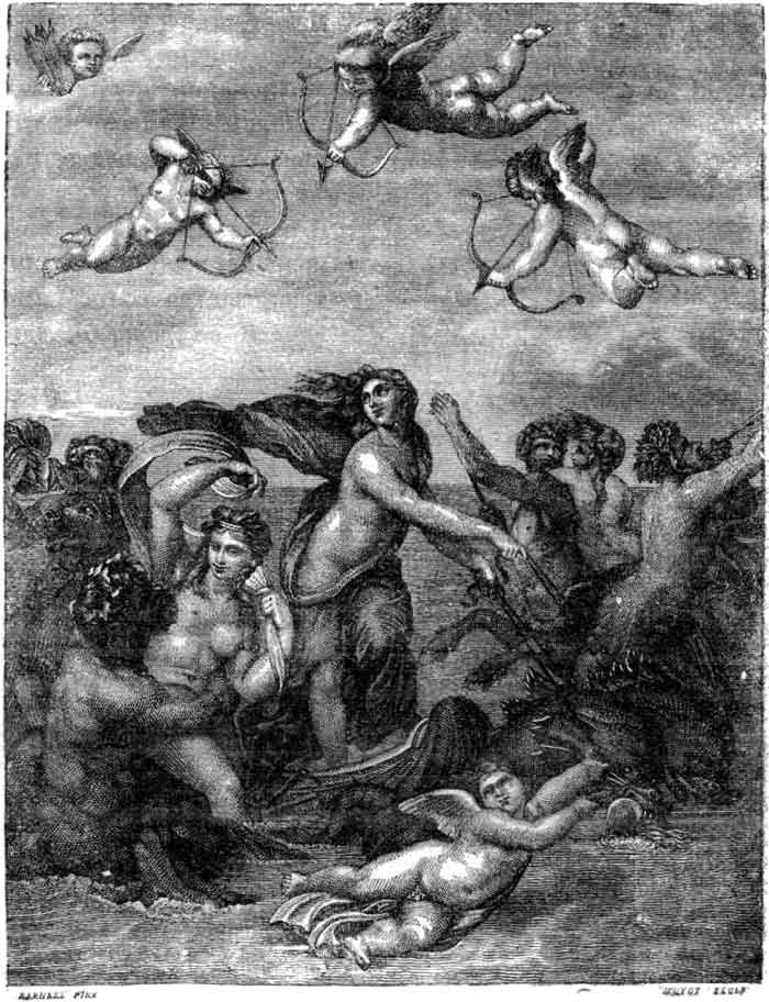 Ведь даже и изображение херувимов и серафимов, летающих на наших церковных, картинах около небесной Девы, ничем не отличаются от амуров, парящих около классической Венеры и других античных красавиц (рис. 125 и. 126).