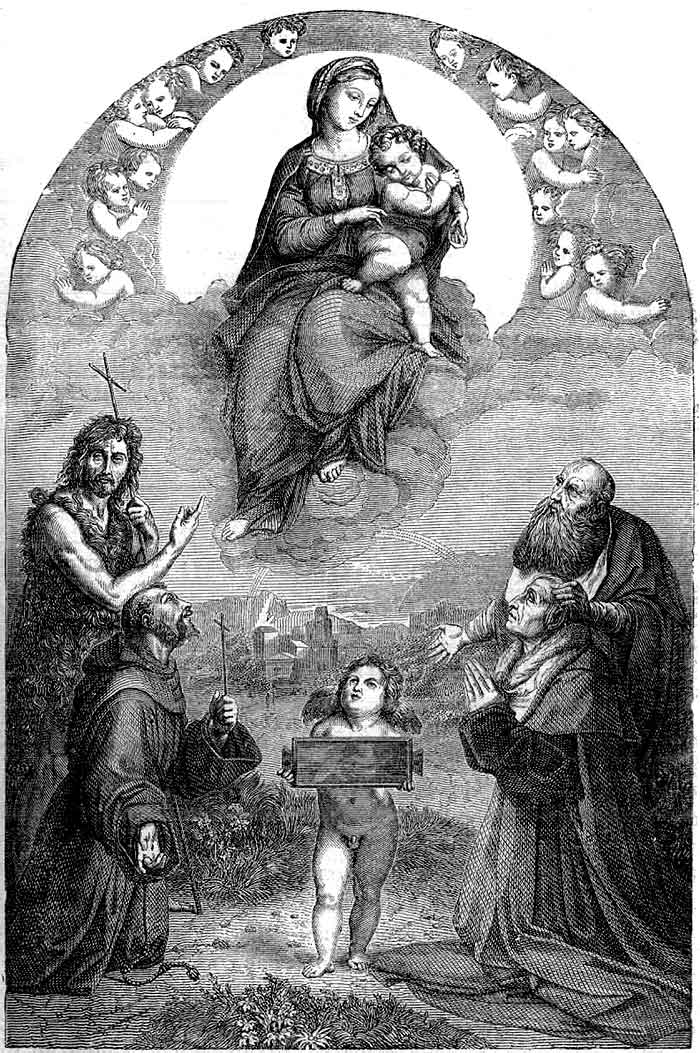 ![]() Рис. 125. Единство классических амуров и христианских церковных херувимов. Картина Рафаэля: Триумф Галатеи (Рим, Фарнезина). ![]() Рис. 126. Единство классических амуров и христианских херувимов Картина Рафаэля; Мадонна (Ватикан). |