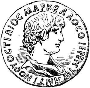 Клеопатра вышла замуж за Цезаря и уехала с ним в Рим, оставив царствовать Богоборца XV, брата утонувшего. После смерти Юлия Цезаря ( —44 г.) она возвратилась в Александрию и, отравивши своего брата Птолемея XV, сама стала царствовать. Затем — говорят нам — в минус 42 году, прибыв в Тарс, она прельстила в Киликии Антония (Лициния), который поехал жить. с нею в Александрию. Своего сына от «Юлия Цезаря» — Цезариона — она объявила с —35 года своим соправителем. Но в —31 году Октавиан-Август (Константин I) одержал морскую победу над Лнцинием при Акциуме у берегов Эпира, и египетское войско отказалось повиноваться побежденному вождю. Антоний сам себя убил после 7 лет жизни с Клеопатрой, Клеопатра, отравилась, а Цезарион был будто бы убит по приказанию Октавиана (Константина I).