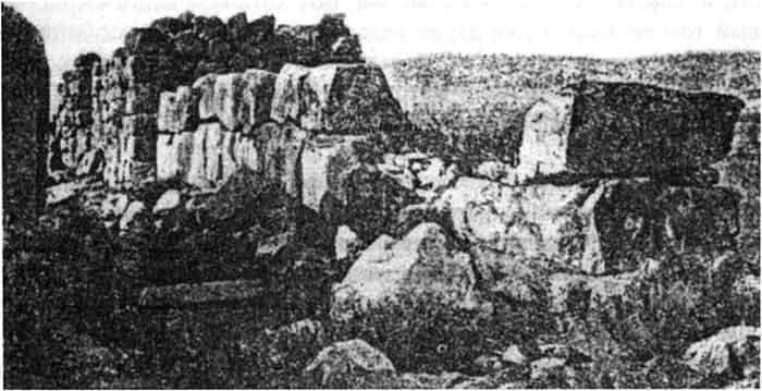 ![]() Рис.2. Остатки циклопических стен, открытие в 1884 году Шлиманом в Арголиде, относимые к Микенской эпохе и с нашей точки зрения одновременные эпохе Египетских пирамид. |