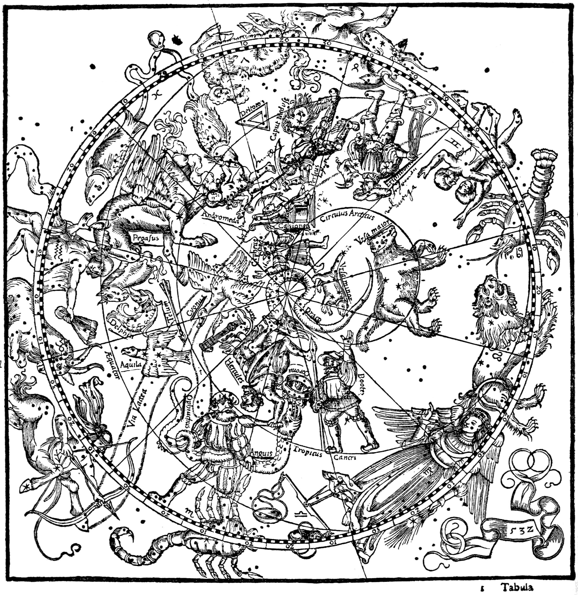 Карта II (к стр. 217). Созвездия древнего неба. Из Алмагосты „Птоломея Александрийского“. Сфотографировано с книги:
