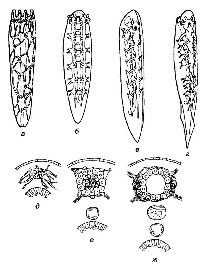 С другой стороны, появились скопления нейронов с наружным расположением тел клеток и нейропилем из переплетенных отростков внутри ганглия (рис. 5,е). Этот тип организации ганглиев оказался достаточно эффективным и сохранился до настоящего времени у большинства беспозвоночных. Такой ганглий обладает рядом преимуществ, которые имеют особое значение для животных с незамкнутой кровеносной системой. Тела его нейронов расположены преимущественно на наружной поверхности, что позволяет поддерживать довольно высокий уровень метаболизма: снабжать питательными веществами, кислородом и отводить токсичные продукты экскреции клеток. Ней-ропиль, находящийся внутри ганглия, дает возможность обмениваться сигналами и формировать генерализованный ответ на разнообразные сенсорные сигналы. По-видимому, из этой формы концентрации нервных элементов возникли головные и туловищные ганглии высших беспозвоночных (рис. 5,ж), ганглии и нервная трубка позвоночных (рис. 5,д,з). В головных ганглиях беспозвоночных сложились два основных типа гистологических структур: островковые скопления тел клеток и стратифицированные грибовидные тела. Островковые скопления тел клеток беспозвоночных практически идентичны подкорковым и стволовым ядрам позвоночных. Организация грибовидных тел напоминает слоистое расположение клеток в коре млекопитающих. Однако грибовидные тела беспозвоночных не имеют упорядоченных вертикальных связей между нейронами и колончатой организации. Тем не менее стратификация нейронов в грибовидных телах предполагает сходство механизмов обработки информации в ассоциативных центрах позвоночных и беспозвоночных животных.