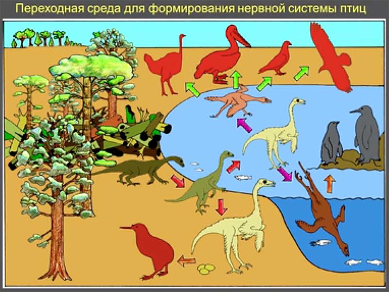 По-видимому – надо ввести понятие некой переходной среды, на которую сейчас очень много указаний – в том числе и палеонтологических – связанных с тем, что предки современных птиц – веерохвостых – осваивали билатераль, то есть они охотились, собирали пищу – а это очень кормное место – а потом перешли к плаванию и к полёту.