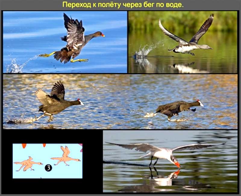 Но не только. Есть совершенно [иные] птицы, которые – конечно это вторично, конечно это достаточно примитивно, тем не менее – они отлично летают под водой не пользуясь задними конечностями, что позволяет предположить – что это тот самый архаичный исходный вариант, на который можно опираться, пытаясь понять, как эти животные стали – собственно говоря – летать.