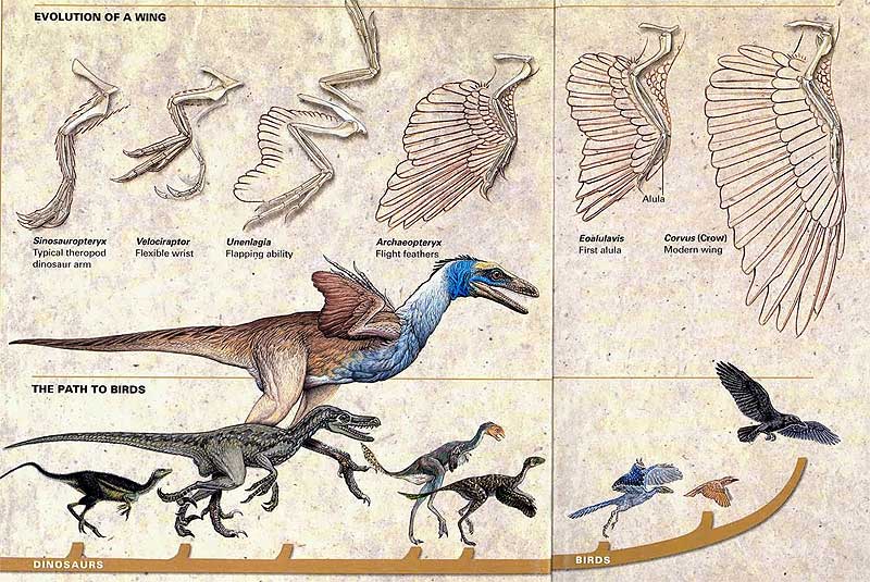 Но всегда, когда мы касаемся летающих существ – в том числе птиц – у нас речь идёт о каких-то красивых всегда преобразованиях. Со времен Ковалевского, который описывал конечность лошади – взяв с разных континентов, неожиданно для всех – вошла такая мода, что выводят птиц – так или иначе – из каких-то динозавро-подобных существ. И всё внимание сосредоточено на крылья, и когда-то – когда нашли археоптерикса – считали, что вот это и есть то, что нужно. На самом деле сейчас уже считают далеко не так. Археоптериксов больше десятка найдено. Но идея концептуальная осталась прежней, т.е. пытаются вывести вот из нашей пятипалой конечности терапод – в том числе на Западе, что не совсем верно – сделать из этого конечность птиц, то есть крыло.