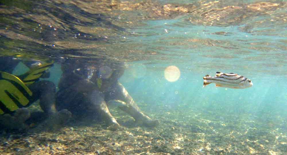 На этом пляже сделан единственный подводный снимок рыбки-арестанта, которых обычно увидишь сверху с мостков на мелководье.